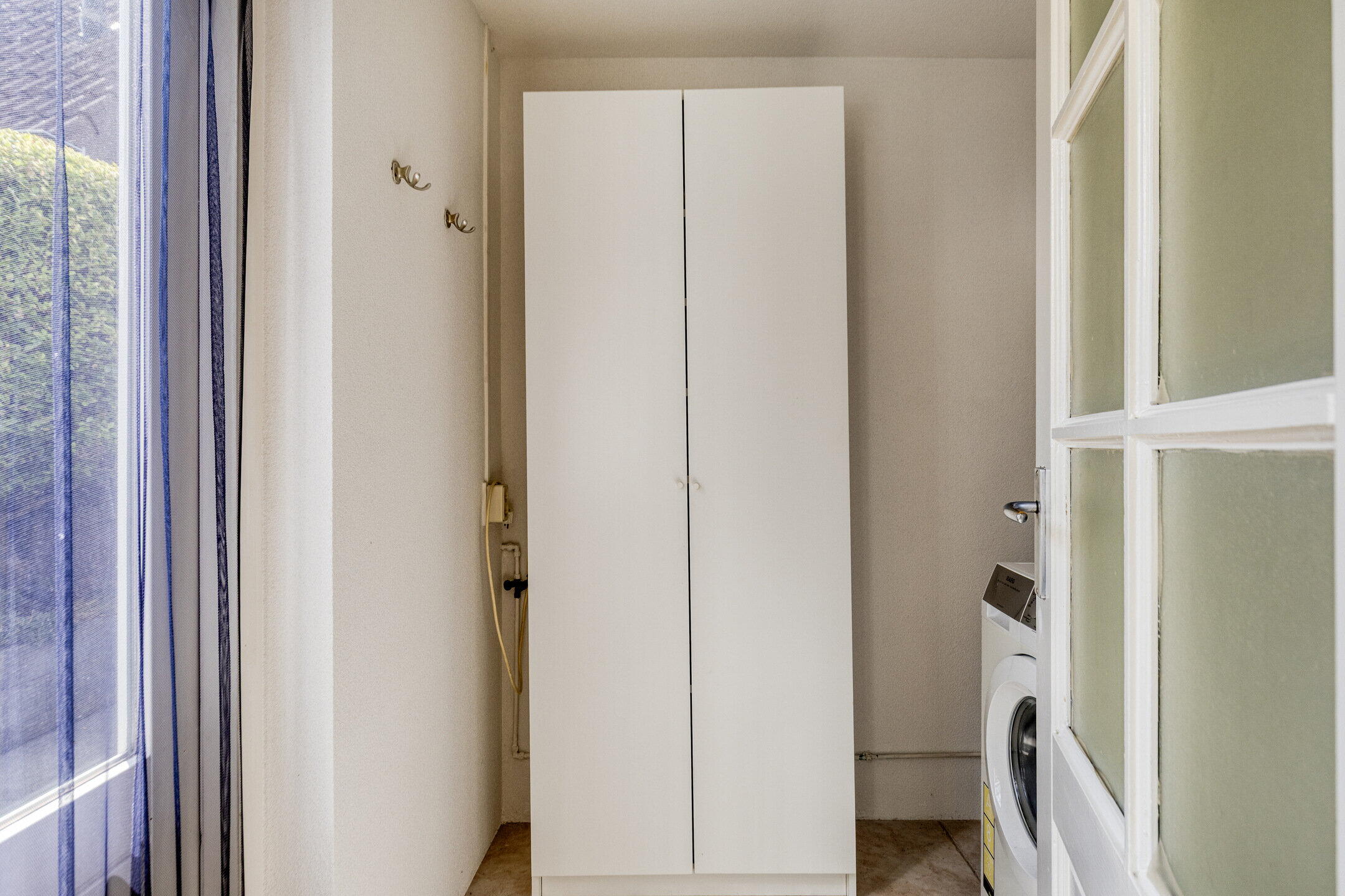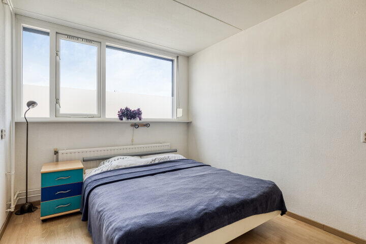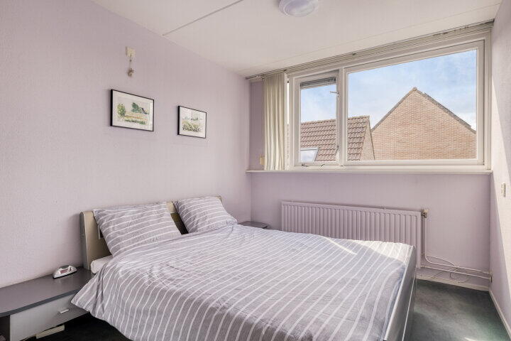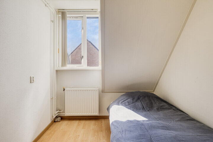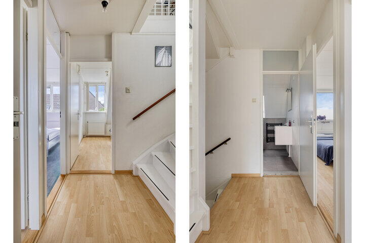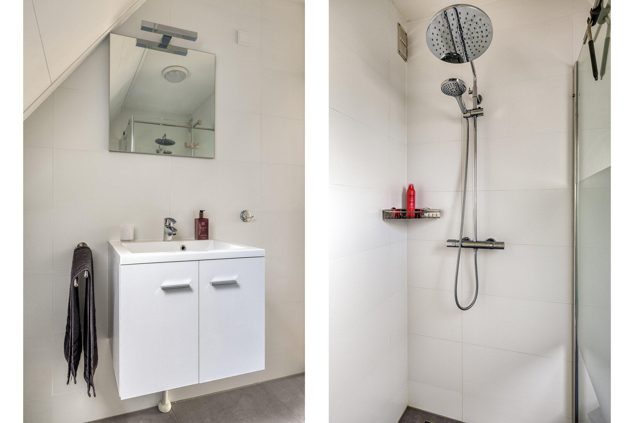 Op de eerste verdieping zijn drie slaapkamers te vinden. Twee daarvan zijn ruim genoeg voor een tweepersoonsbed én een grote kledingkast. De derde kamer is iets compacter en perfect als kinderkamer, thuiswerkplek of logeerkamer.